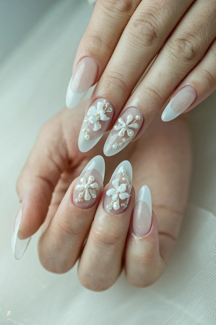 Soft nude bases with crisp white tips dominate wedding nails inspo and elegant everyday looks.