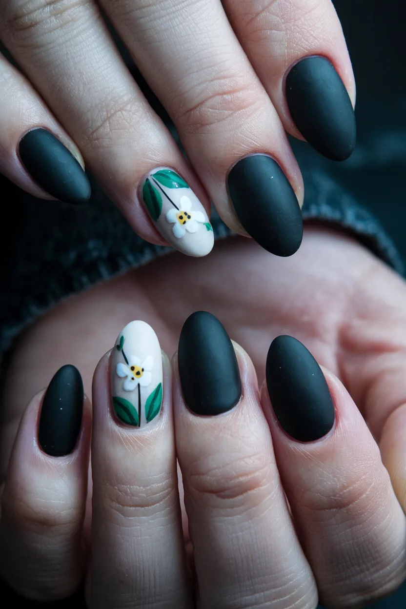 - Matte black under black nails inspo