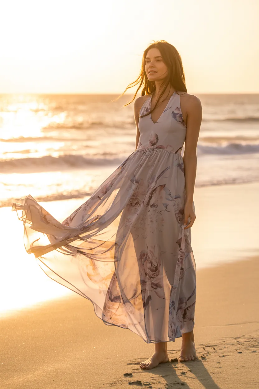 Flowy silhouettes and feminine cuts define trending summer dresses this season. Think sheer layers, floral prints, and romantic details ideal for spring outfits for women transitioning into warmer months.