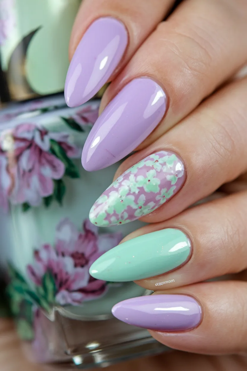 Pastels are dominating spring nails ideas this year — think lavender, baby blue, mint green, and soft pink.