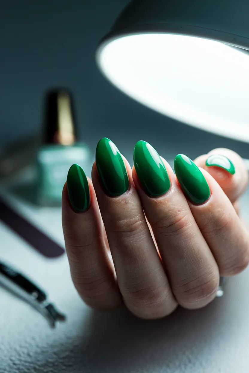 Deep emerald and royal blue are trending for early fall nails ideas transitions.