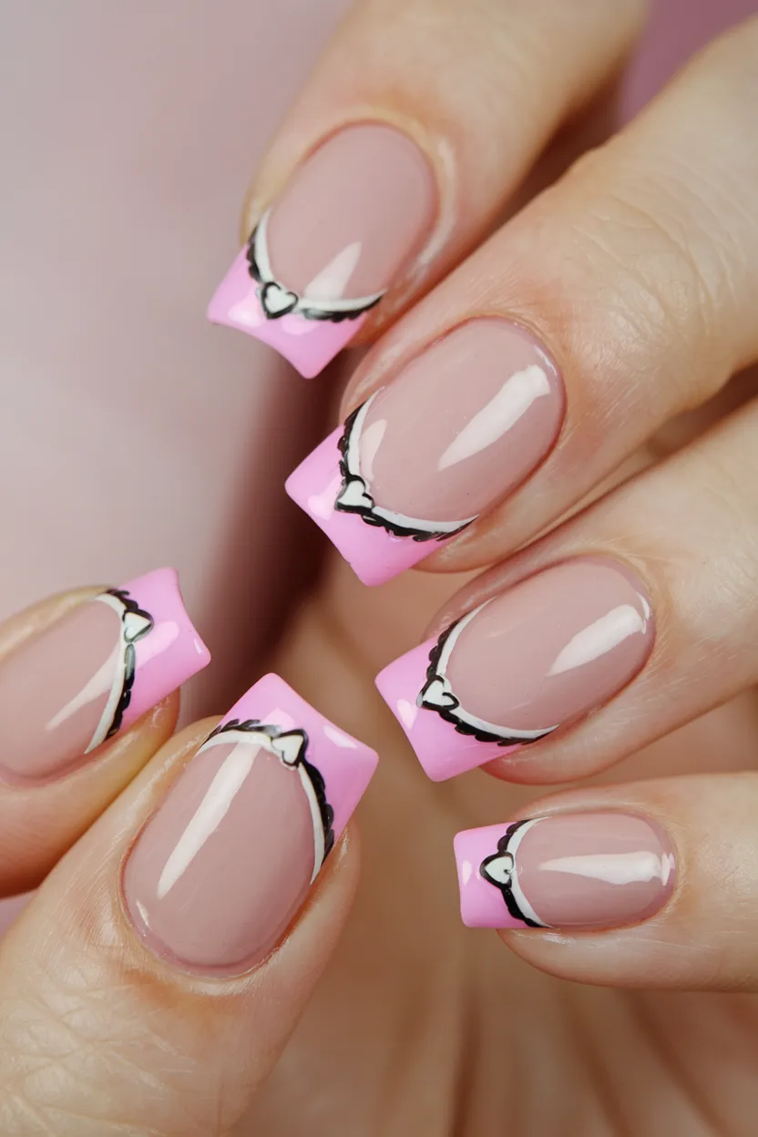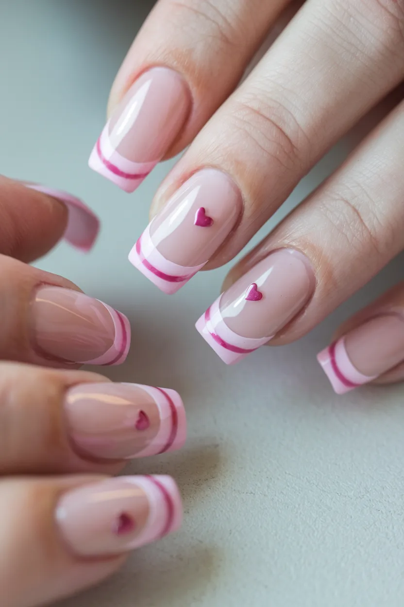 Thin French lines, tiny hearts, and chrome outlines are replacing heavy nail art.